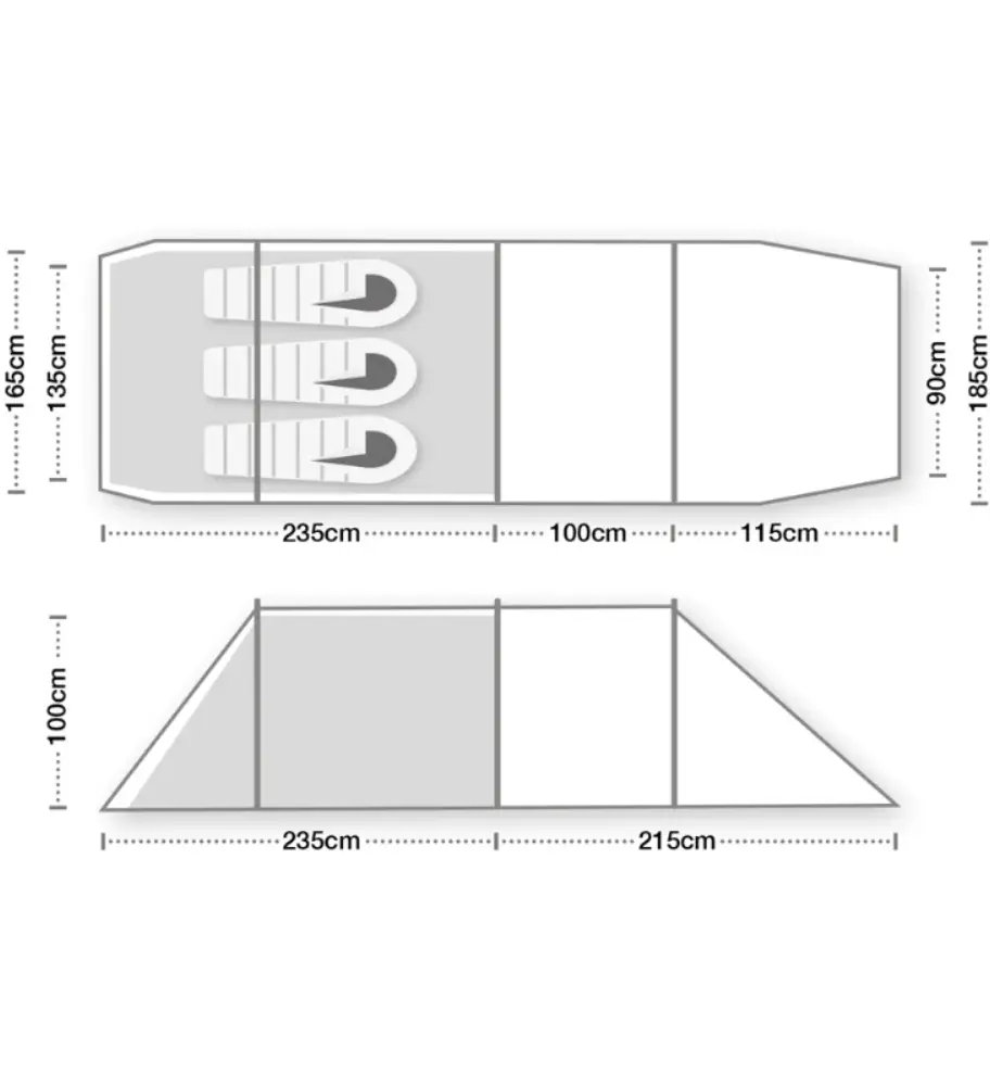 - The lightweight tent provides an enormous porch and a generous inner for its weight. It also packs down to a compact pack size of just 30cm x 24cm, increasing the options for the type of activities it can be used for and how to carry it.
